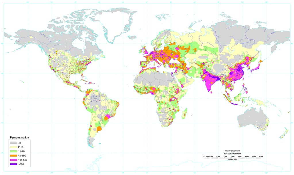 MAPA DE LA DENSIDAD DE LA POBLACIÓN MUNDIAL
