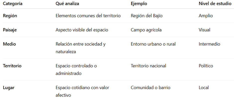 Categorías de análisis del espacio geográfico: la región, el paisaje, el medio, el territorio y el lugar