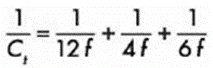 1.- Determina la capacitancia total de un circuito en serie de 3 condensadores de 12, 4 y 6 faradios respectivamente