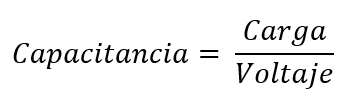 Su propiedad llamada capacitancia, es igual a la carga almacenada entre la diferencia de potencial (voltaje).