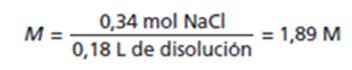 1.- Determina la molaridad de una disolución de 20g de NaCl en 180ml de agua. Las masas atómicas de Na = 23 y de Cl = 35.5.