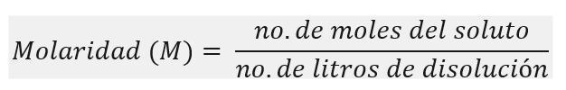 La molaridad es el número de moles de un soluto en 1 litro de disolución.