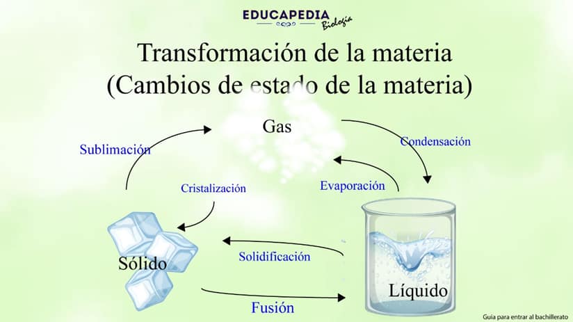 1.- Transformación de la materia (también llamados cambios de estado de la materia)