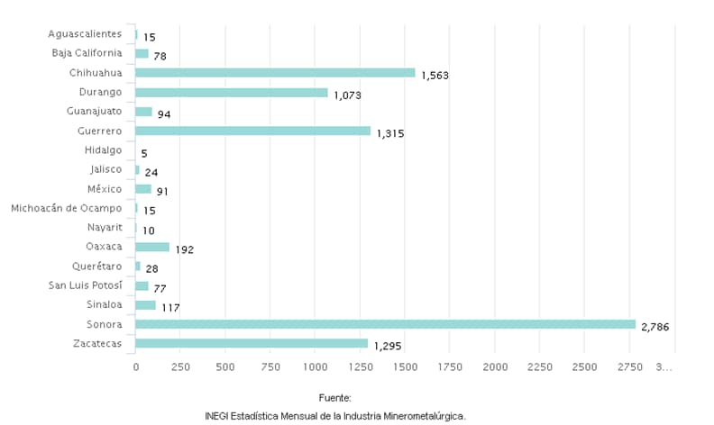 - 3.- Jalisco – 55 mil en plata, plomo, zinc, oro y cobre.