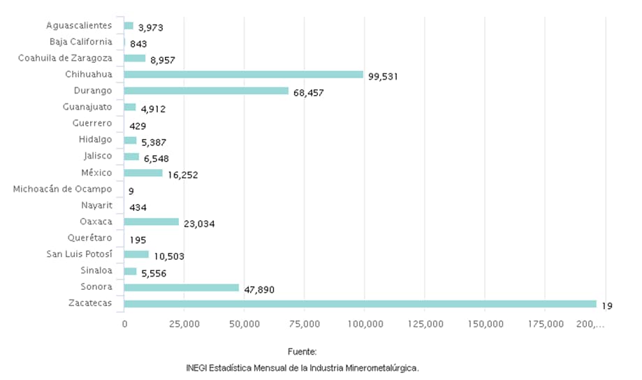 - 5.- Durango – 42 mil en plata, plomo, zinc y fierro.