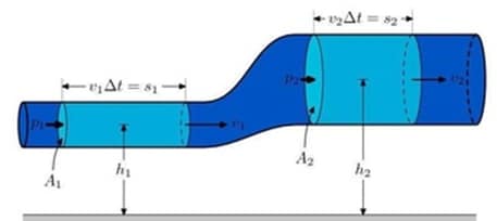 En el capítulo sobre la ecuación de continuidad vimos que el volumen que entre en un tubo lleno, es el mismo que sale del tubo. Solo nos interesó las variables de entrada y de salida del líquido.