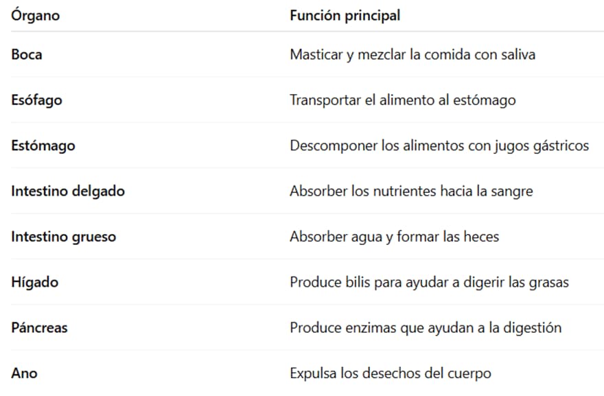 🧩 Órganos principales del sistema digestivo