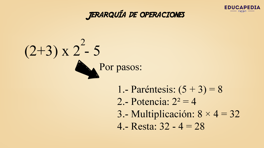 - Multiplicación y división: ×, ÷ (de izquierda a derecha)