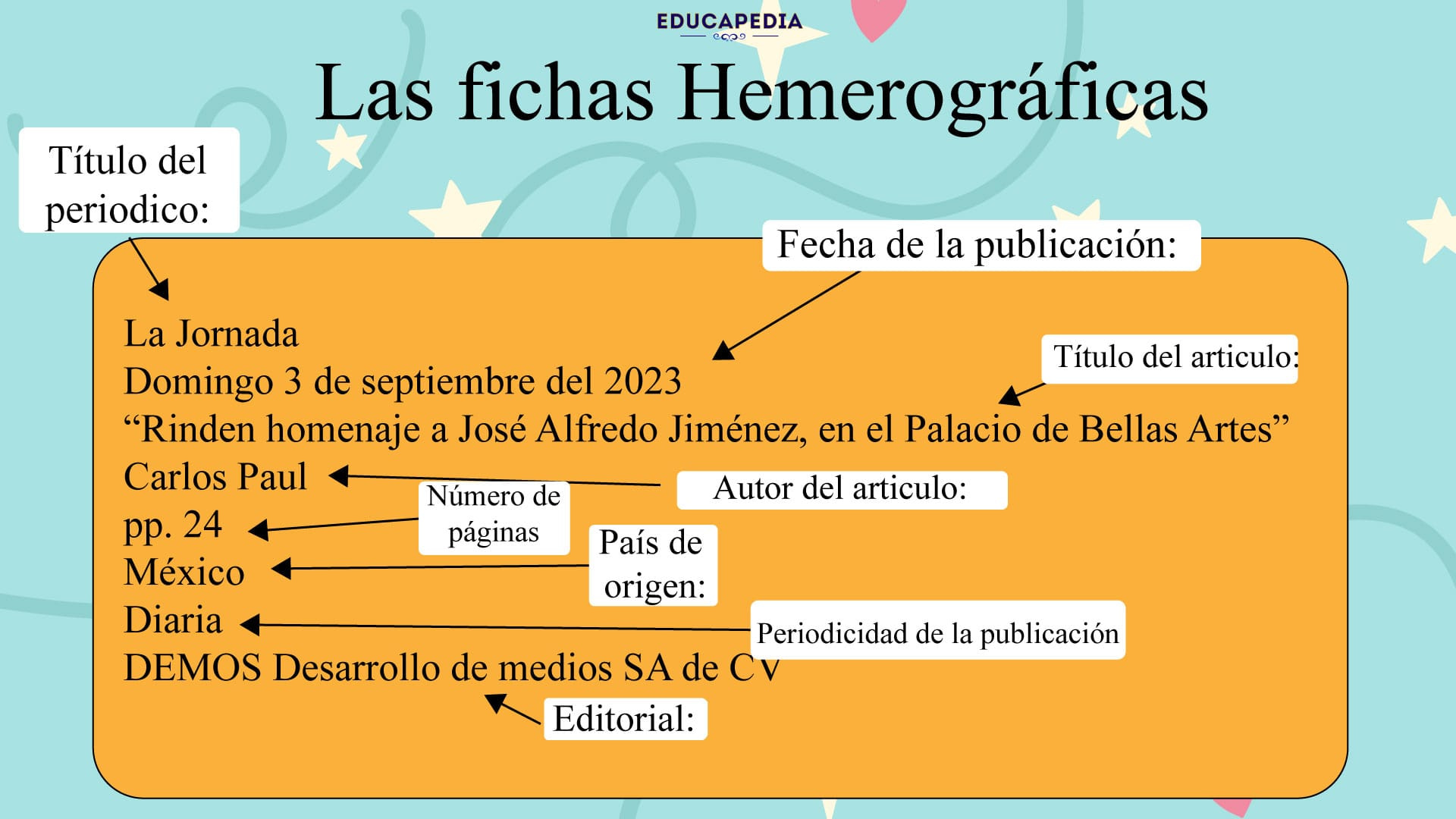 La ficha hemerográfica es la ficha que contiene los datos de identificación de un periódico o de una revista.