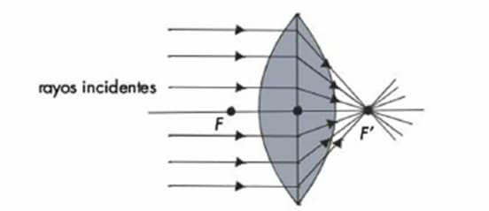 Son los lentes que tienen un grosor mayor en el centro que en los extremos. Y los rayos que llegan paralelos al eje de una lente convergente se refractan y concurren en el foco. (es decir, convergen en el foco).
