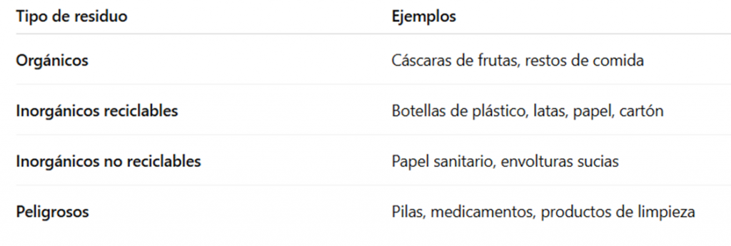 🧾 Tipos principales de residuos: