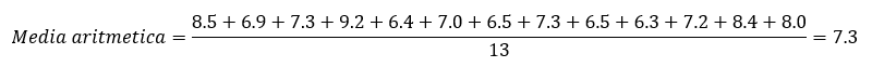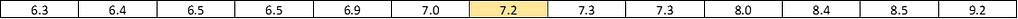 El promedio de nuestras calificaciones es 7.3 y la mediana es 7.2