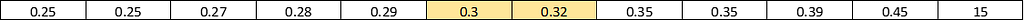 Así que tenemos que la mediana de el volumen de todos los paquetes es: 0.31 metros cúbicos.