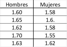 - 2.- Tu profesor de deportes quiere saber cuál es la estatura media de tu salón de clases. Para esto solo toma una muestra de 5 mujeres y 5 hombres al azar. Los datos son: