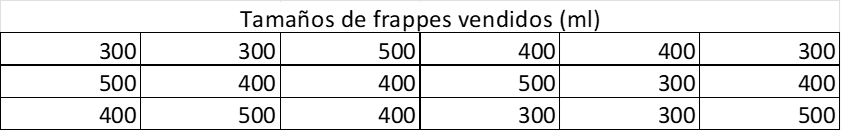 - 1.- El dueño de una cafetería quiere saber cuál es la moda en el tamaño los frappés que vende. Para esto tiene los siguientes datos: