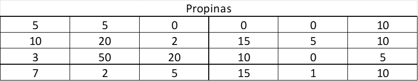 - 2.- Un grupito de meseras y meseros quieren saber cuál es la propina más común que reciben en una cafetería. Es decir, quieren calcular la moda de las propinas.