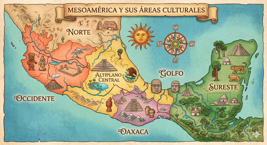 Comprender Mesoamérica y sus áreas culturales es fundamental para entender las raíces históricas de México. Estas áreas muestran cómo diferentes pueblos crearon grandes civilizaciones, compartieron conocimientos y dejaron un legado que aún forma parte de nuestra identidad cultural.