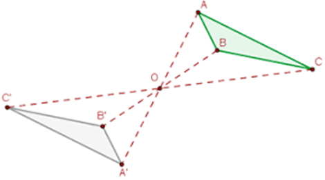 - Cada punto del sólido se transforma en otro punto opuesto respecto al centro.