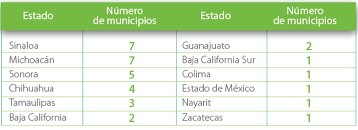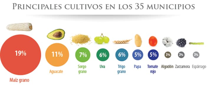 - 1.- Sinaloa, Sonora, Jalisco, Michoacán y Estado de México – Maíz