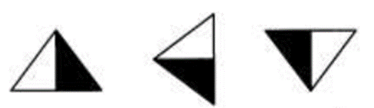 Esta serie espacial tiene 2 categorías: Primero es la rotación del triángulo y la otra categoría, es el sombreado de una parte del triangulo