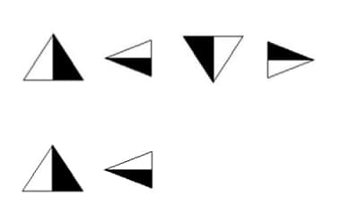 Esta serie espacial tiene 2 categorías: Primero es la rotación del triángulo y la otra categoría, es el sombreado de una parte del triangulo