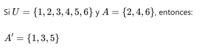 - Conjunto universal (U): Conjunto que contiene a todos los elementos bajo consideración en un contexto.