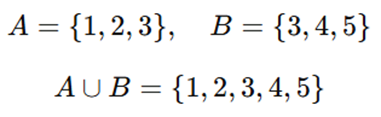 La unión de dos conjuntos A y B, denotada A ∪ B, es el conjunto de elementos que están en A, en B, o en ambos.