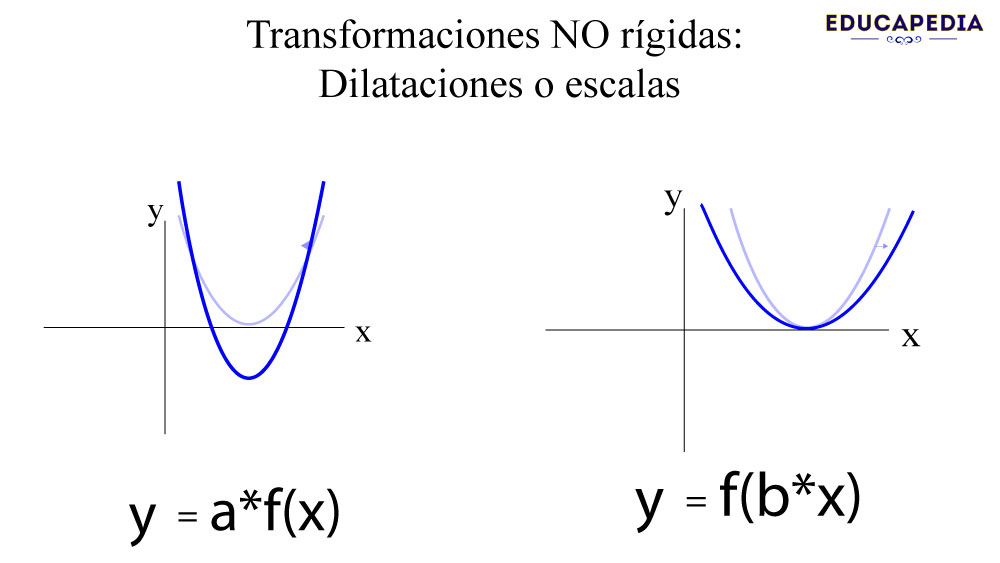 Las transformaciones no rígidas sí cambian la forma de la gráfica: la estiran, contraen o deforman.